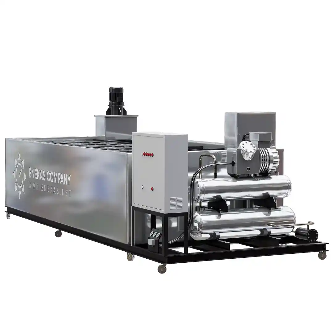 یخ ساز ۲۰۰ قالبی: در دنیای صنایع سنگین مانند پروژههای نفتی عسلویه، سردخانههای بزرگ بنادر جنوبی، شیلات صادراتی و فرآوری مواد غذایی حجیم، نیاز به یخساز قالبی با ظرفیت عظیم و عملکرد بیوقفه بیش از پیش احساس میشود. یخ ساز قالبی ۵ تنی روزانه شرکت ماشینسازی انعکاس با ارتقاهای مهندسیشده، نه تنها شیفتهای ۲۴ ساعته را به ۱۲ ساعت نصف کرده، بلکه تولید را به ۱۰ تن روزانه دو برابر رسانده است.