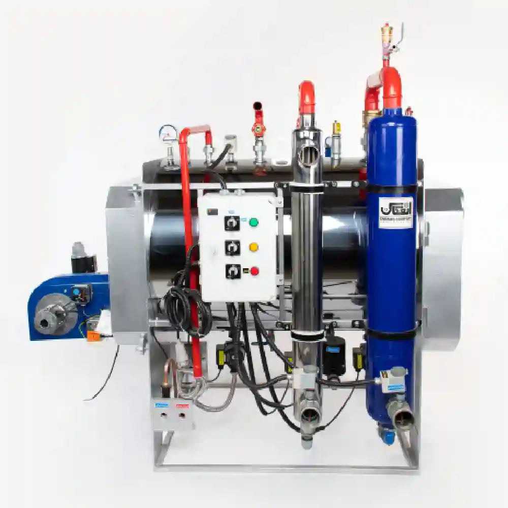 بدنه فولادی مقاوم به ضخامت ۶ میلیمتر و لولههای آتشخوار بدون درز ما سبون شش میلیمتری، مقاومت بالای دستگاه را تضمین میکنند. اتصالات دستگاه با جوش CO2 MIG و الکترود ۷۰۱۸ انجام شده، و عایقبندی حرارتی از جنس پشم سرامیک با ضخامت استاندارد انجام شده که میزان پرت حرارتی را تا ۹۵ درصد کاهش داده و راندمان کلی را به 93 درصد میرساند؛ این میزان راندمان از بهترینهای بازار است.