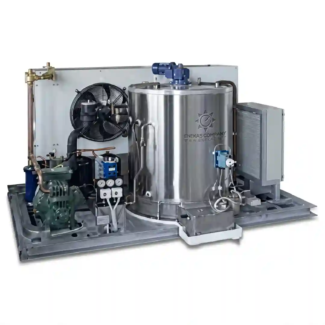 یخساز پولکی 5 تن صنعتی قادر است به صورت ۲۴ ساعته و پیوسته کار کند. کمپرسور و کندانسور قدرتمند، دمای سیستم را در حد استاندارد نگه میدارند و یخ با کیفیت بالا تولید میشود. تابلو برق مکانیکی و PLC مدیریت عملکرد دستگاه را بهینه میکنند، بدون اینکه اپراتور نیاز به مداخله زیاد داشته باشد. این ویژگی باعث میشود کارکرد مداوم و بیوقفه دستگاه امکانپذیر باشد و از افت کیفیت یخ در طول روز جلوگیری شود.