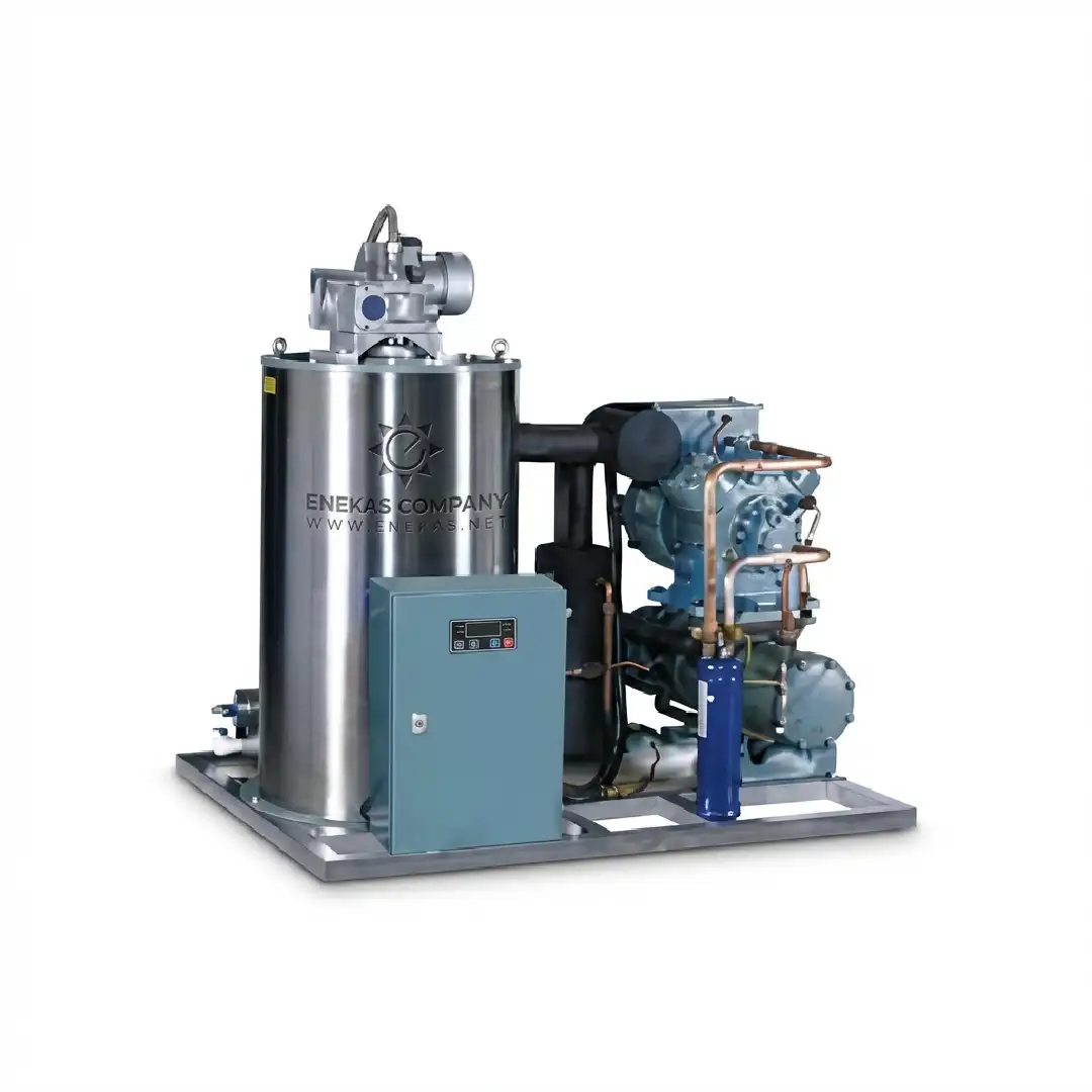 یخ ساز پولکی 6 تن صنعتی درام عمودی ماشینسازی انعکاس، انتخابی حرفهای و ایدهآل برای صنایع بزرگ، کارخانههای لبنیات، شیلات، مرغداریها و صنایع غذایی است که نیاز به تولید یخ با کیفیت بالا و پیوسته دارند. این دستگاه با ظرفیت تولید ۶ تن یخ در ۲۴ ساعت، طراحی صنعتی مقاوم و سیستمهای کنترل پیشرفته، تضمین میکند که یخ تولیدی همیشه یکنواخت، خالص و قابل استفاده باشد. در طراحی عمودی درام، فضاسازی بهینه صورت گرفته و دسترسی به قطعات داخلی برای سرویس و نگهداری آسان شده است.